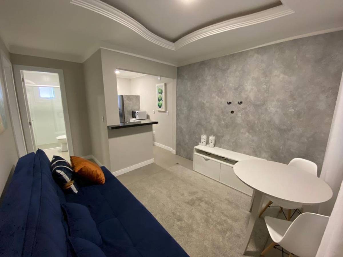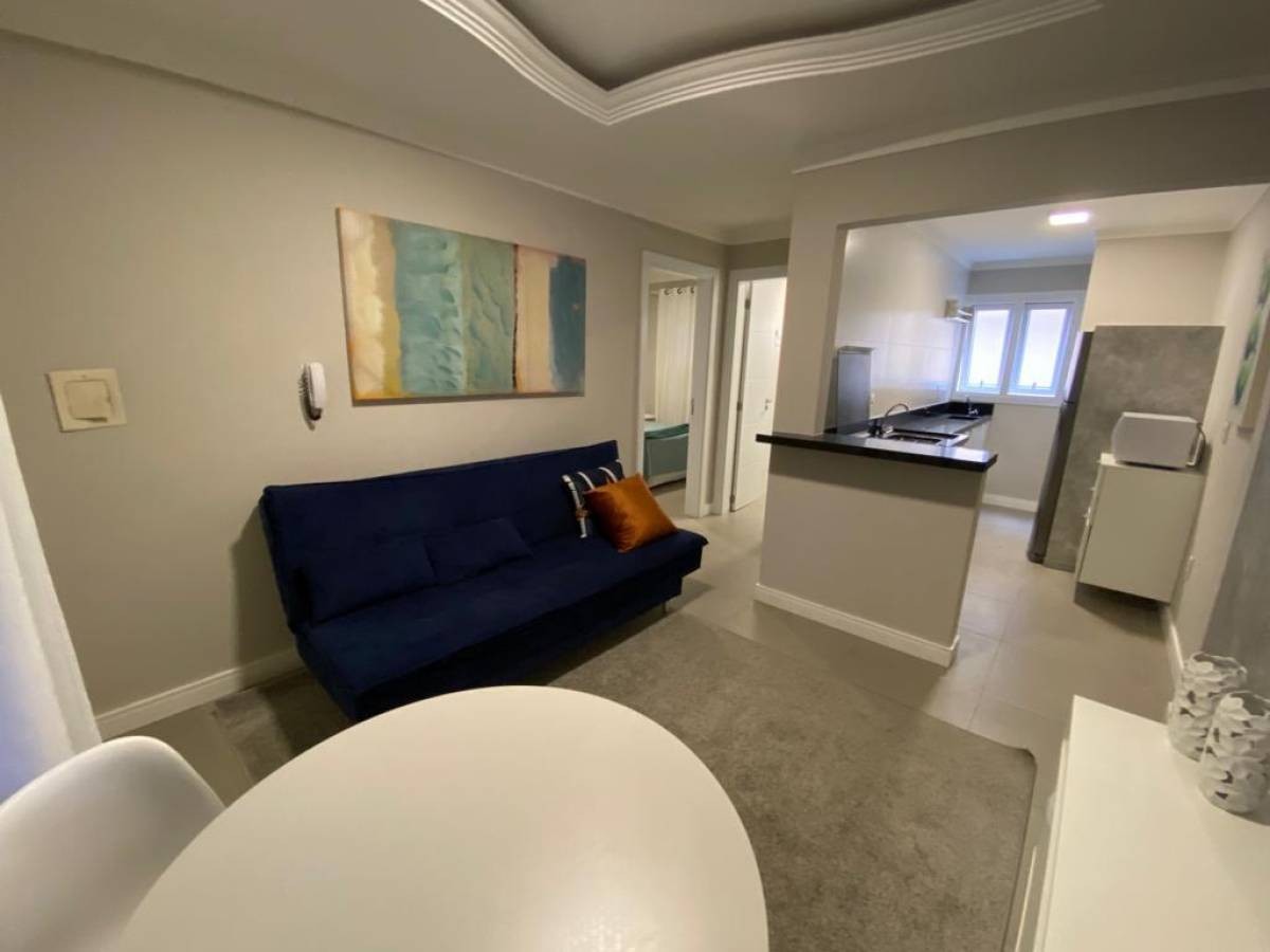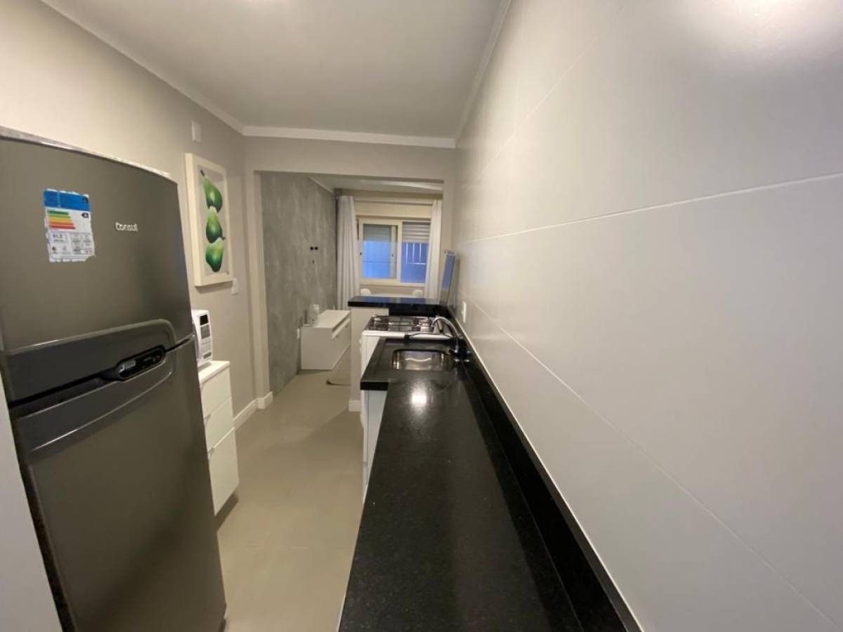 ** APARTAMENTO MOBILIADO A DUAS QUADRINHAS DO MAR ** - Composto de 01 dormitório - Todo mobiliado e repaginado - Sala, cozinha, banho social, churrasqueira - Rebaixo em gesso - Ar condicionado - 01 vaga de garagem - Localizado no centro, junto a praça do Mini-golf, apenas duas quadrinhas do mar