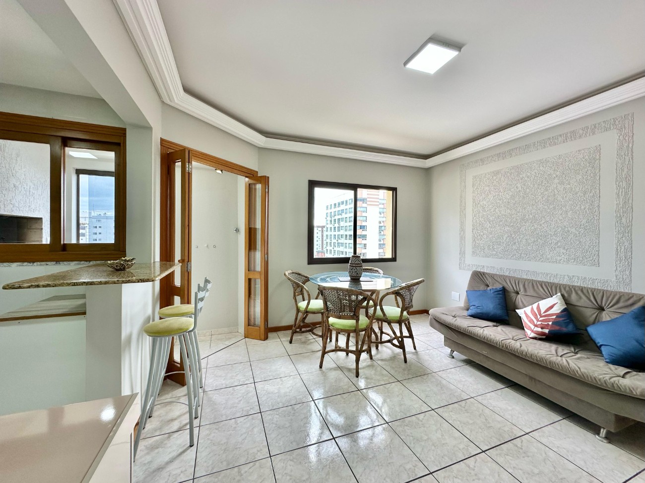 APARTAMENTO LESTE/NORTE À VENDA NO CENTRO DE CAPÃO DA CANOA —————————————— 02 dormitórios Suíte Banho Social Sacada lateral c/ churrasqueira Living Integrado Cozinha Estilo Americana Mobiliado Leste/Norte Andar alto com vista liberada Peças bem iluminadas Pequena vista mar Próximo ao camelódromo Centro de Capão Esquadrias externas em Alumínio Area total: 85M² Box 06 - 01 carro - Térreo ——————————————— Edifício: Água quente/ Gás central 01 Elevador Zelador Permanente