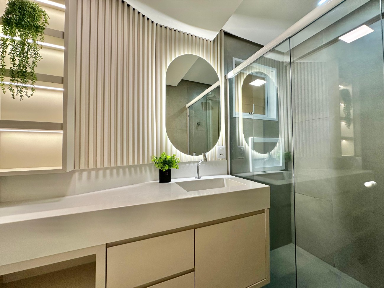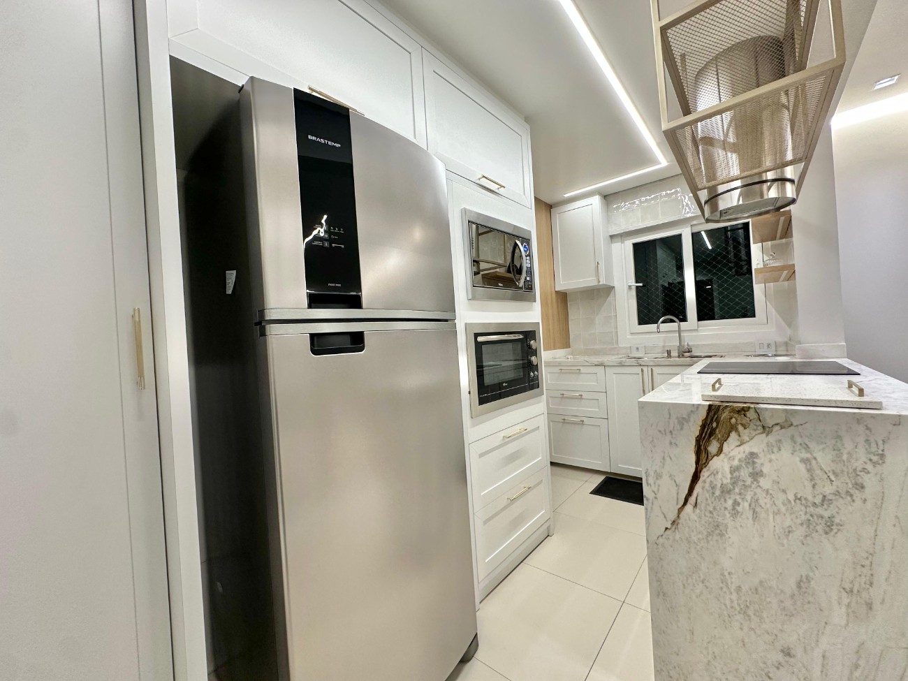 2 dormitórios sendo uma suíte 75, 68? Privativos box amplo banheiro social depósito individual living integrado Leste/Norte mobiliado e decorado cozinha america