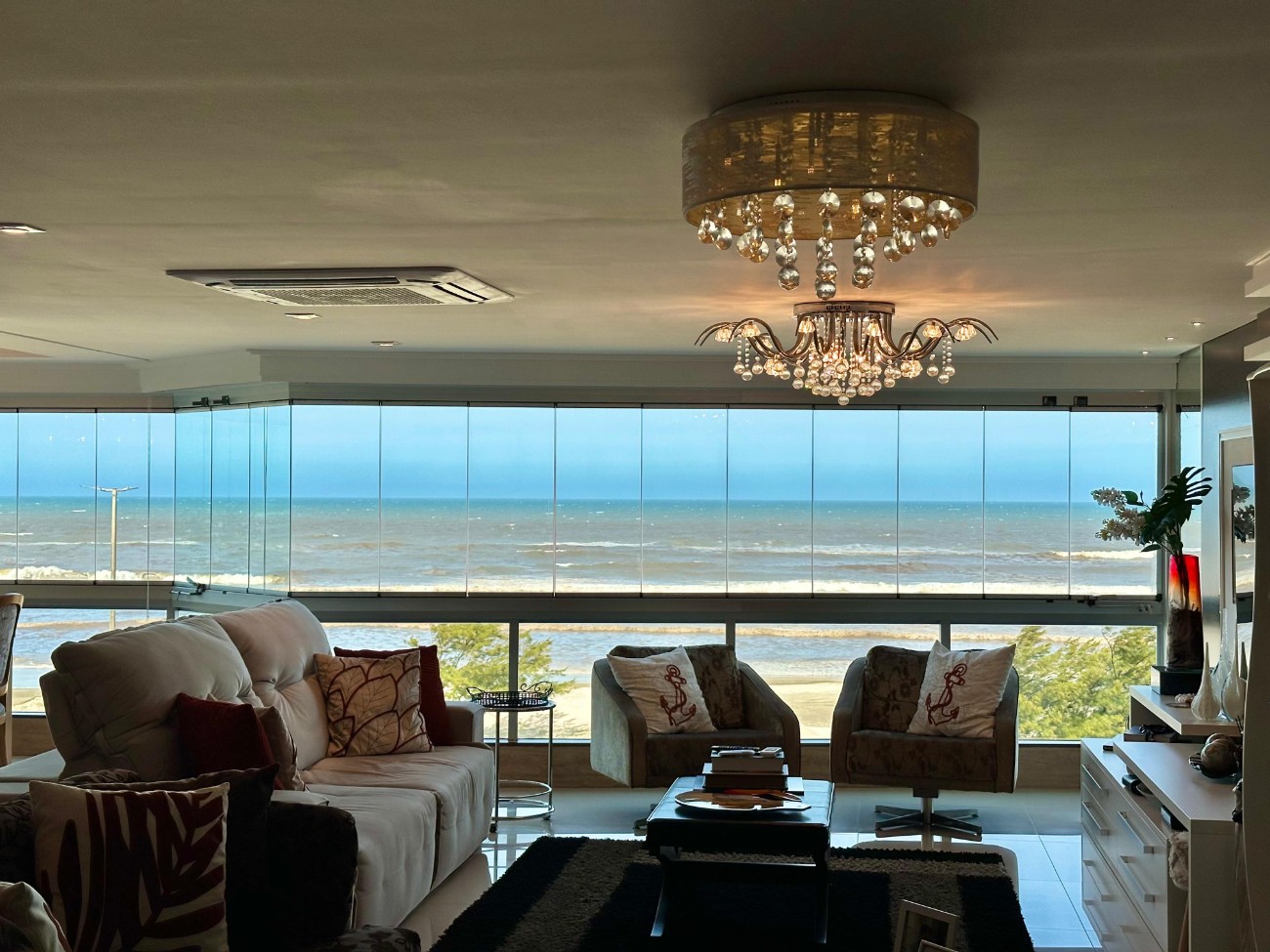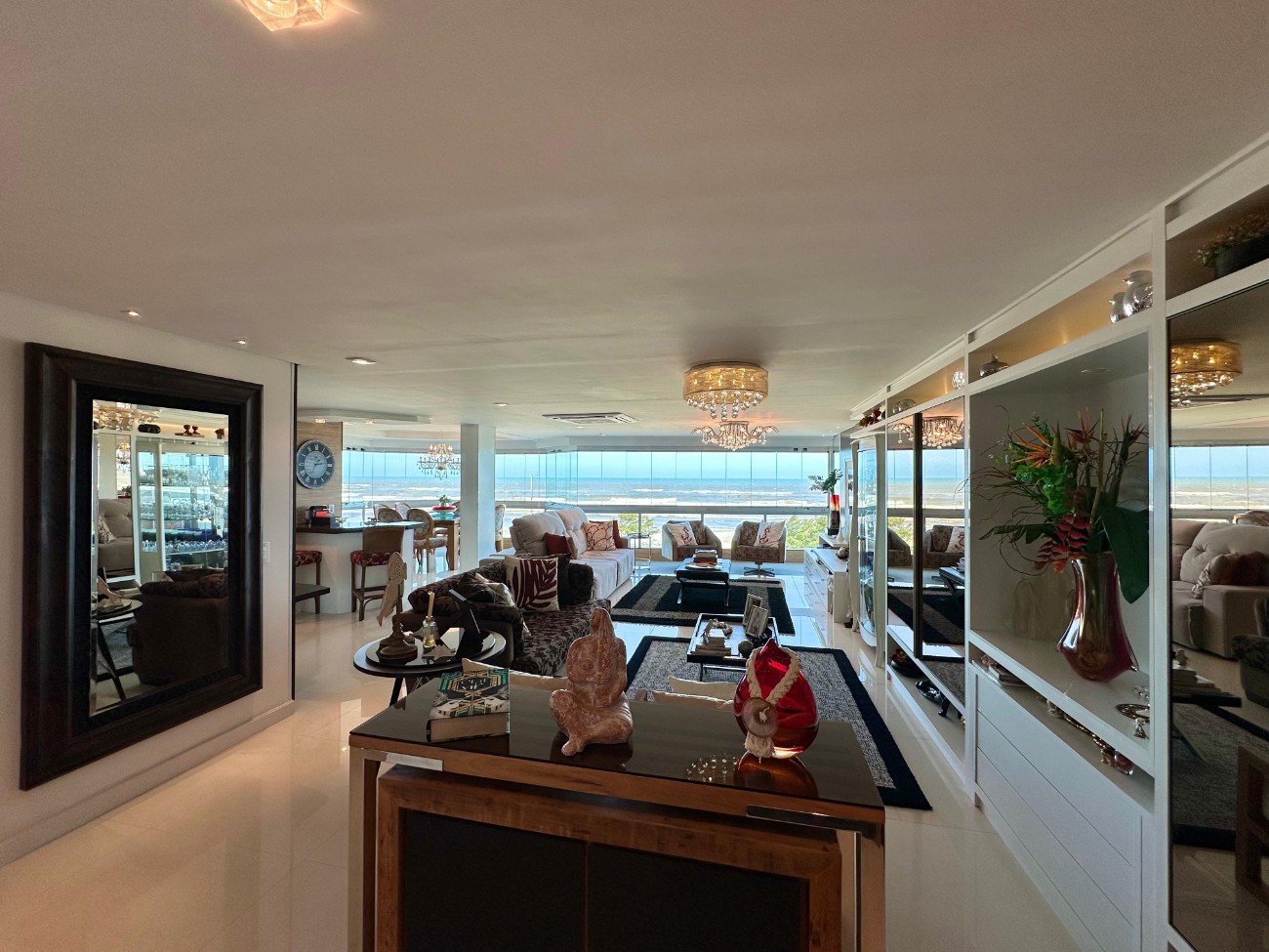 4 suítes 2 box individual c/ carregador elétrico Mobiliado e Decorado Vista eterna mar Cozinha ampla Sacada com churrasqueira Posição solar Leste/ Norte/ Oeste 188 m² privativos Splits em todos ambientes Edifício: 02 Elevadores Zelador Permanente