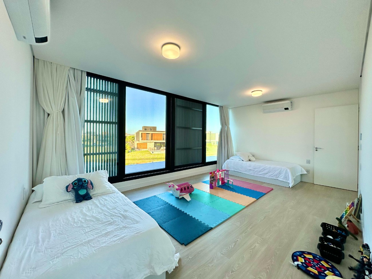 CONDOMÍNIO SENSE SOBRADO BEIRA LAGO À VENDA —————————————— Sobrado com 330 M² Beira lago 03 dormitórios sendo 1 suíte (opção para mais 1 dormitório) Home office Lavabo Completamente mobiliada Jardim de inverno Lareira Living integrado e amplo Excelente iluminação Natural Esquadrias em PVC Terraço/Varanda no segundo andar Jardinagem com irrigação Vaga Coberta para 02 carros Piso aquecido —————————————— Condomínio: Infra completa Portaria 24hs