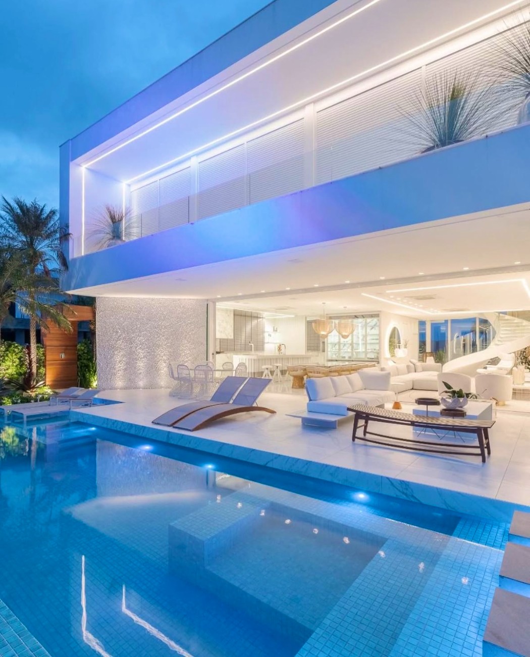 - Com 05 suítes amplas e independentes - Suíte principal com piso frances e acabamento folhado a ouro - Suíte infantil temática decorada - Escada helicoidal com led - Amplos 530m² privativos - 100% mobiliado e decorado - Móveis BonTempo e Natuzzi italia - Porta principal com 6m de altura em pedra calacata - Revestimento em Lastra Calacata Portinari - Automação com comando Alexa na área social - Som ambiente nos lavabos e espaços sociais - Espaço gourmet com torre Naja, Cervejeira e Adega - Churrasqueira com Parrilla e acabamento em pedra Branco Paraná - Todos ambientes climatizados - Luminotécnica interna e externa - Lustres em cristais de rocha - Espera para placa solar - Piscina de concreto com borda infinita e led - Aquecimento da piscina com solar e bomba de calor - Banheiro auxiliar para piscina - Lindíssimo paisagismo - Deck e pergolado estendido - Imóvel conceituado através da revista Vogue