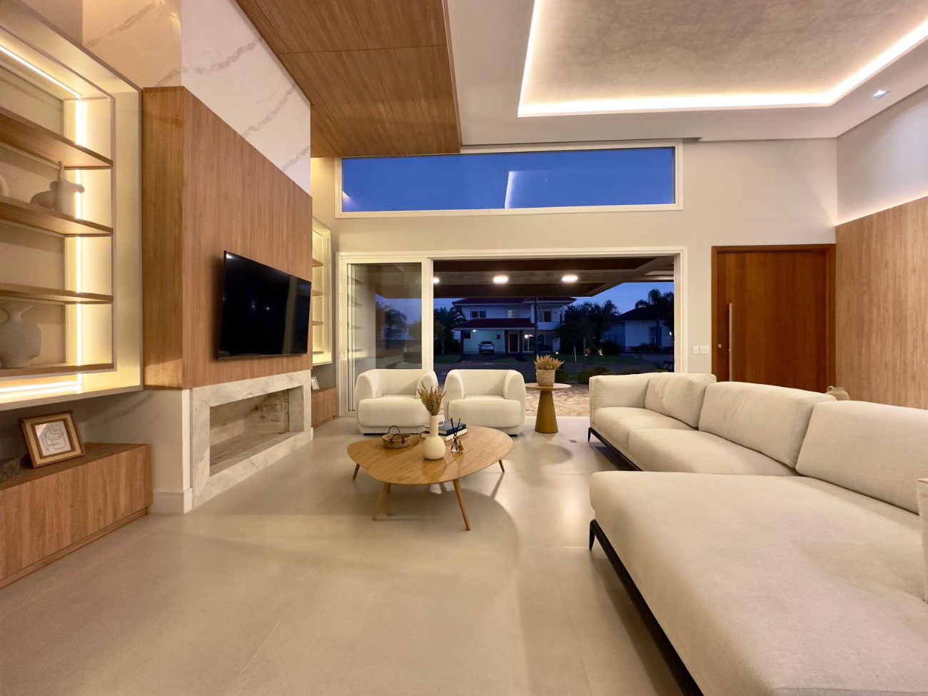 CASA À VENDA NO CONDOMÍNIO GREEN VILLAGE ——————————————— Lote com 1000 M² Casa com 290 M² 05 Suítes Living 3 ambientes lareira Lavabo Espaço Gourmet Lavanderia Piscina concreto Persianas automatizadas Esquadrias em pvc Mobiliada e decorada ——————————————— Condomínio: Infra completa Único com campo de golf no litoral Segurança 24H