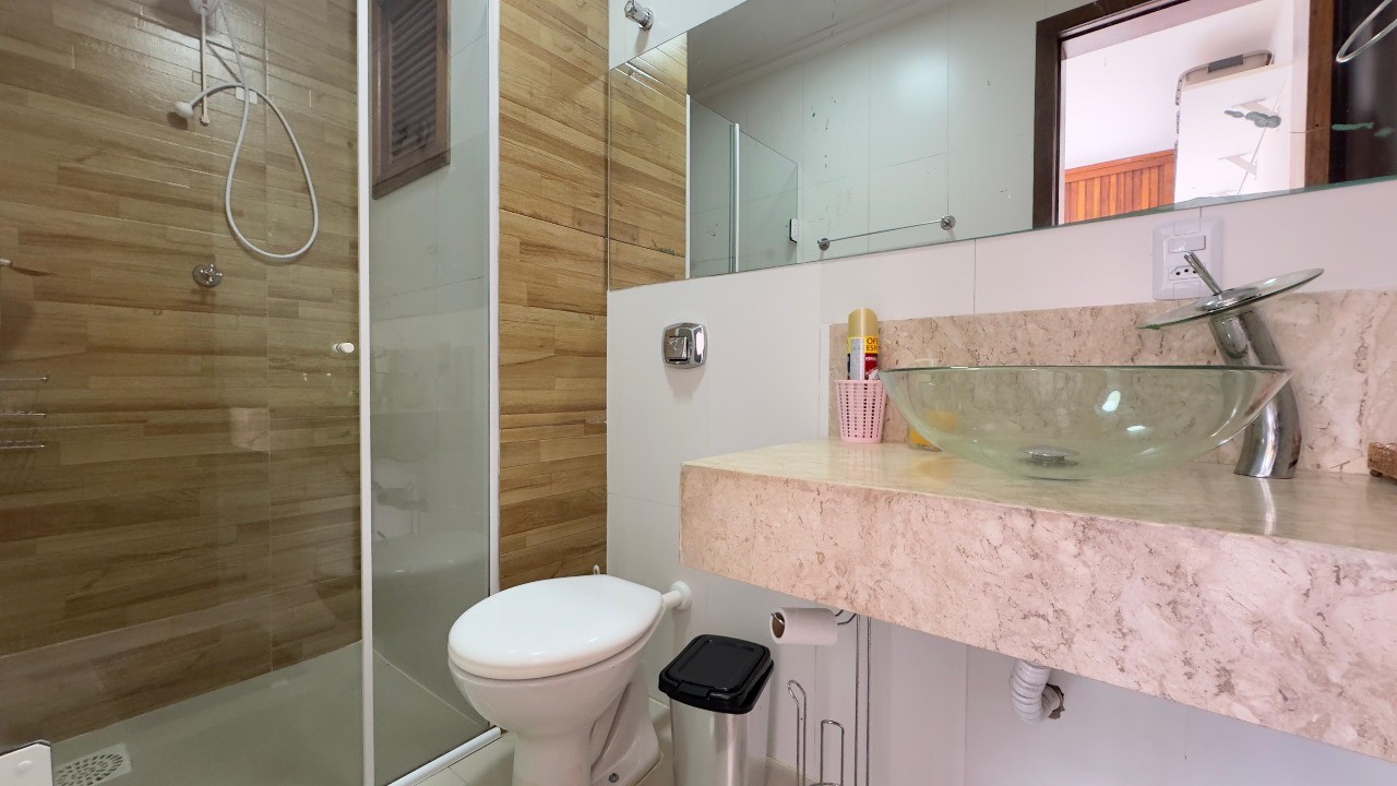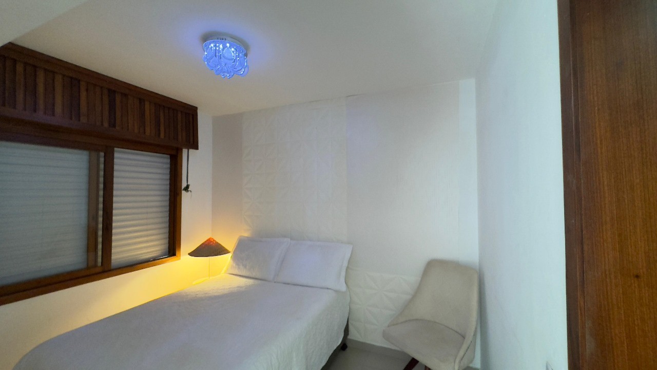 01 dormitório mobiliado Sacada lateral com churrasqueira e vista liberada Living, cozinha e quarto com excelente ventilação natural Ambientes ensolarados e bem distribuídos Edifício com elevador, hall com câmeras de segurança e porteiro eletrônico Localização privilegiada – próximo ao mar, supermercados e restaurantes Piso porcelanato e móveis sob medida