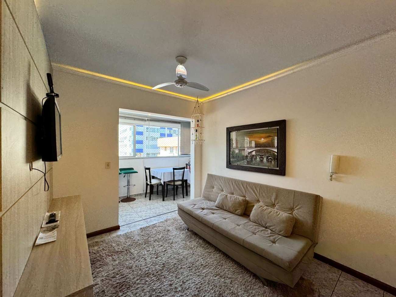 01 dormitório Totalmente mobiliado Gigante 50, 84m área privativa 62, 74 área total Todo Leste (sol da manhã) Ar condicionado no quarto Próximo ao mar e ao centro Junto a Praça Flávio Boianovski Edifício com elevador, hall e zeladoria permanente