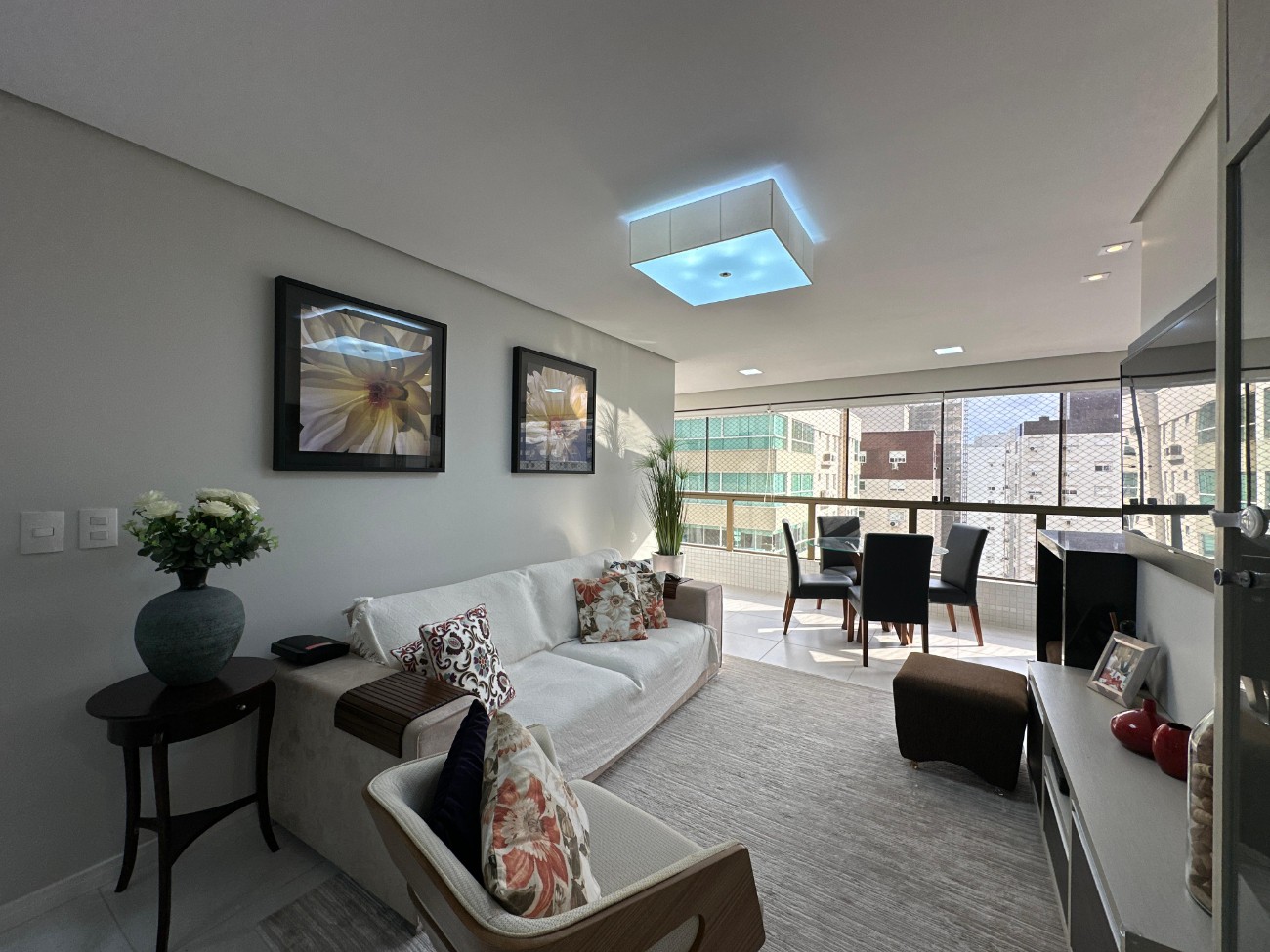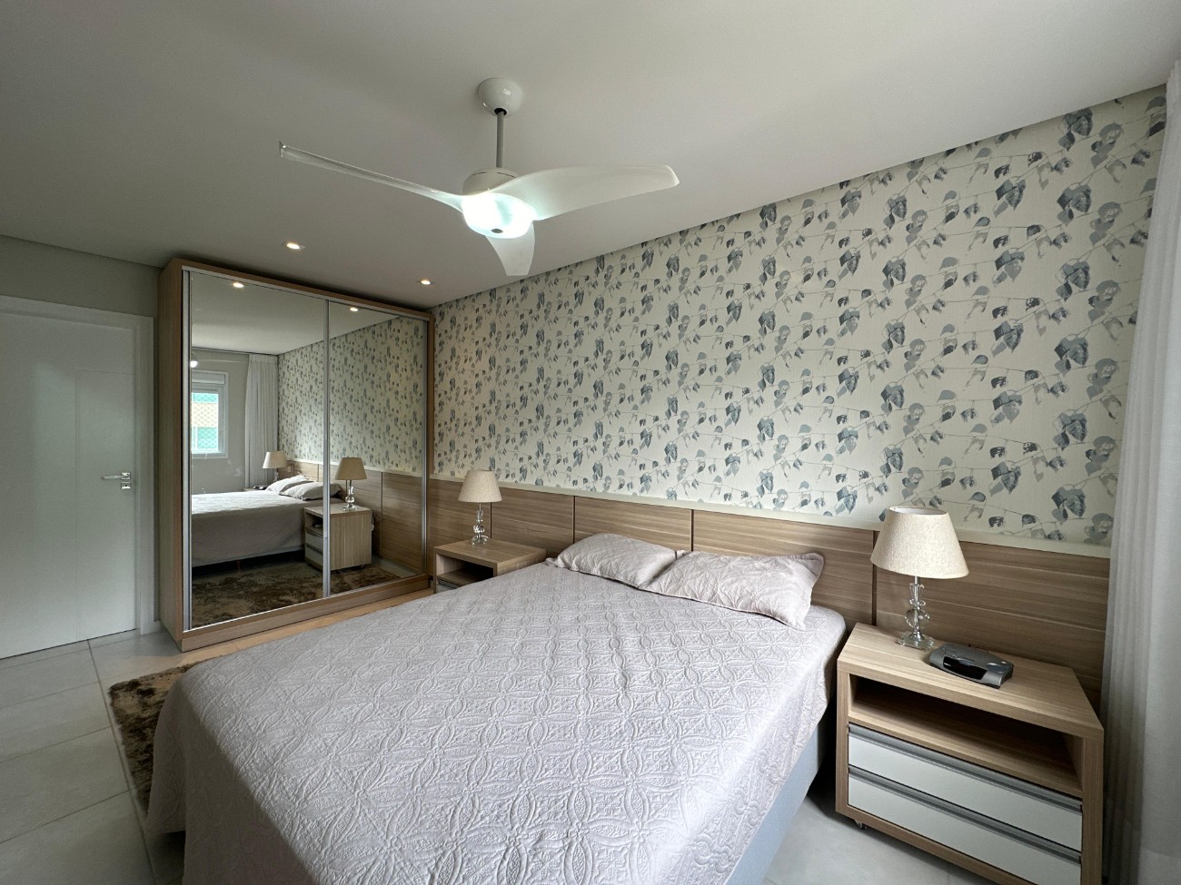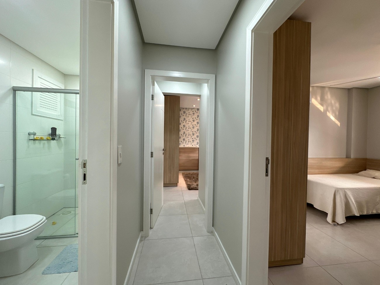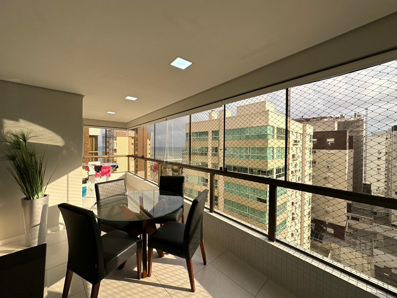 02 Dormitórios (01 Suíte) Banho social Sacada de frente Sul Mobiliado e Decorado Churrasqueira 89, 99 metros Vista Mar 02 vagas de garagem térrea ———————————— Condomínio: Portão e Porteiro Eletrônico Zelador Salão de festa
