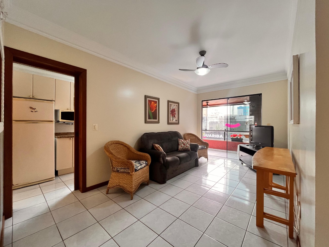 2 dormitórios 1 suíte Sacada de frente Churrasqueira Mobiliado Lavanderia Vaga de garagem
