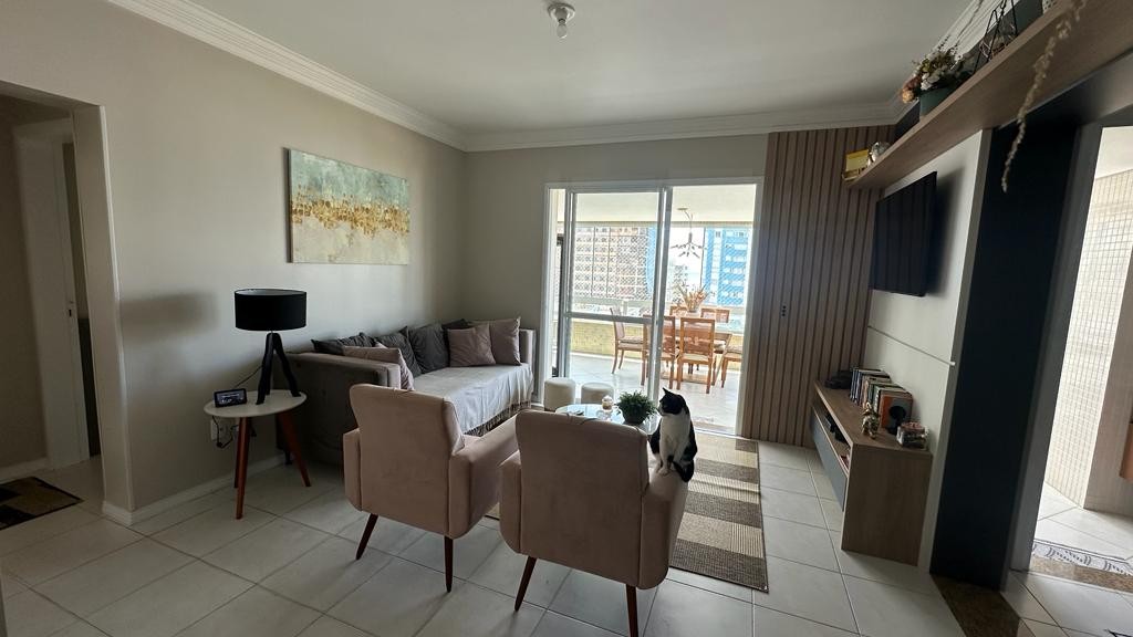 03 Dormitórios sendo 1 suíte Totalmente mobiliado Banheiro social Cozinha separada Living em 03 ambientes Sacadão com linda vista da Praça e do Mar Churrasqueira com pia auxiliar ao lado Área de serviço enorme e separada, com junker instalado Garagem Próximo ao mar e a linda praça Edifício com 2 elevadores, hall e zeladoria permanente