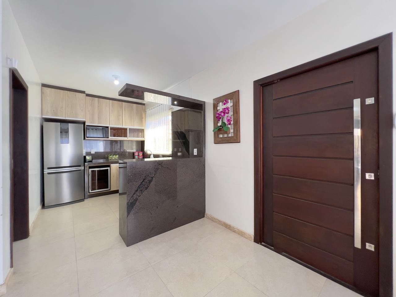 2 dormitórios - 1 suíte Escritório ( pode ser quarto) Salas de estar, jantar 2 Banhos social Cozinha americana Area de serviço separada aragem com churrasqueira Água quente/Gas central Mobiliado Garagem coberta para 2 carros 120M² Área privativa Orientação Norte Jardim, Pergolado, Piscina Monitoramento de segurança