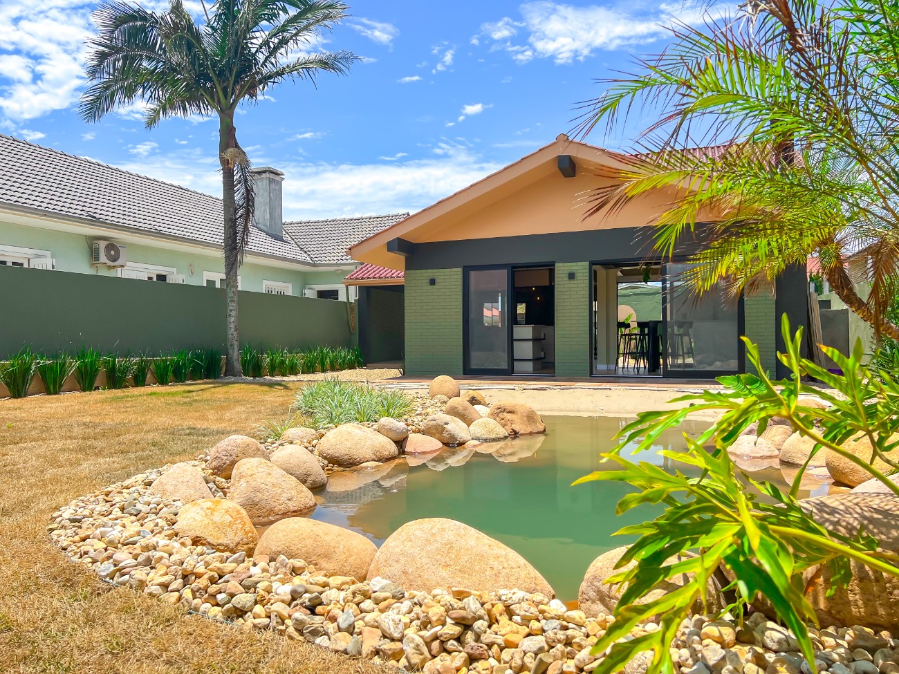 -420m2 área total -Terreno 12x35 -Casa 243, 29m² -Frente leste -4 dormitórios sendo 2 suítes -Living integrado e área gourmet -Amplo pátio com piscina estilo praia -Paisagismo -Mobiiada e decorada