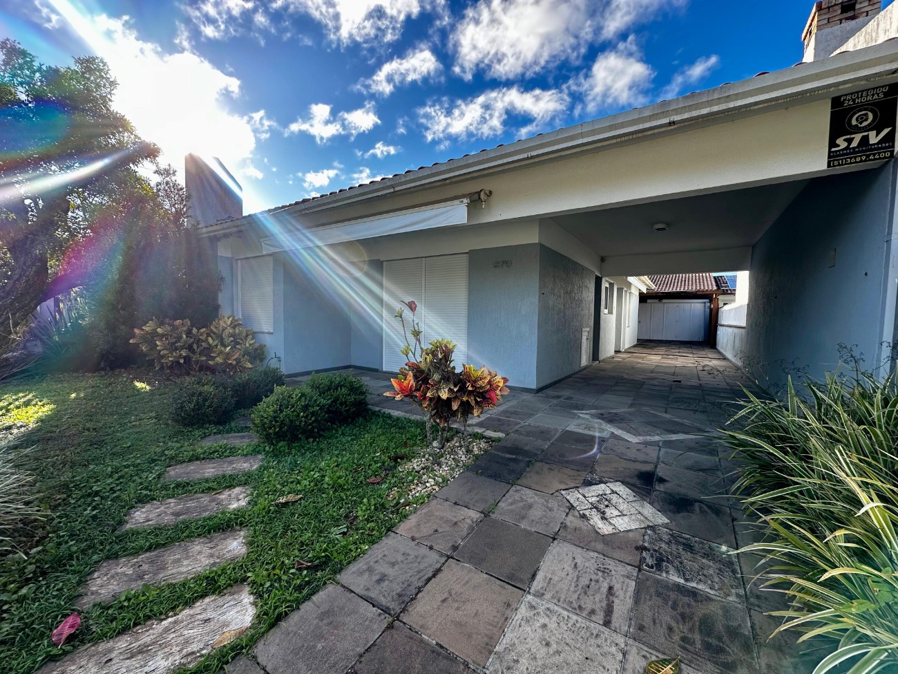 Casa com 245m², com 4 dormitórios+ uma suíte externa para hóspedes, amplo living para 2 ambientes com lareira, cozinha separada, área de estar externa para o verão, anexo com salão de festas. Abrigo coberto e garagem fechada.