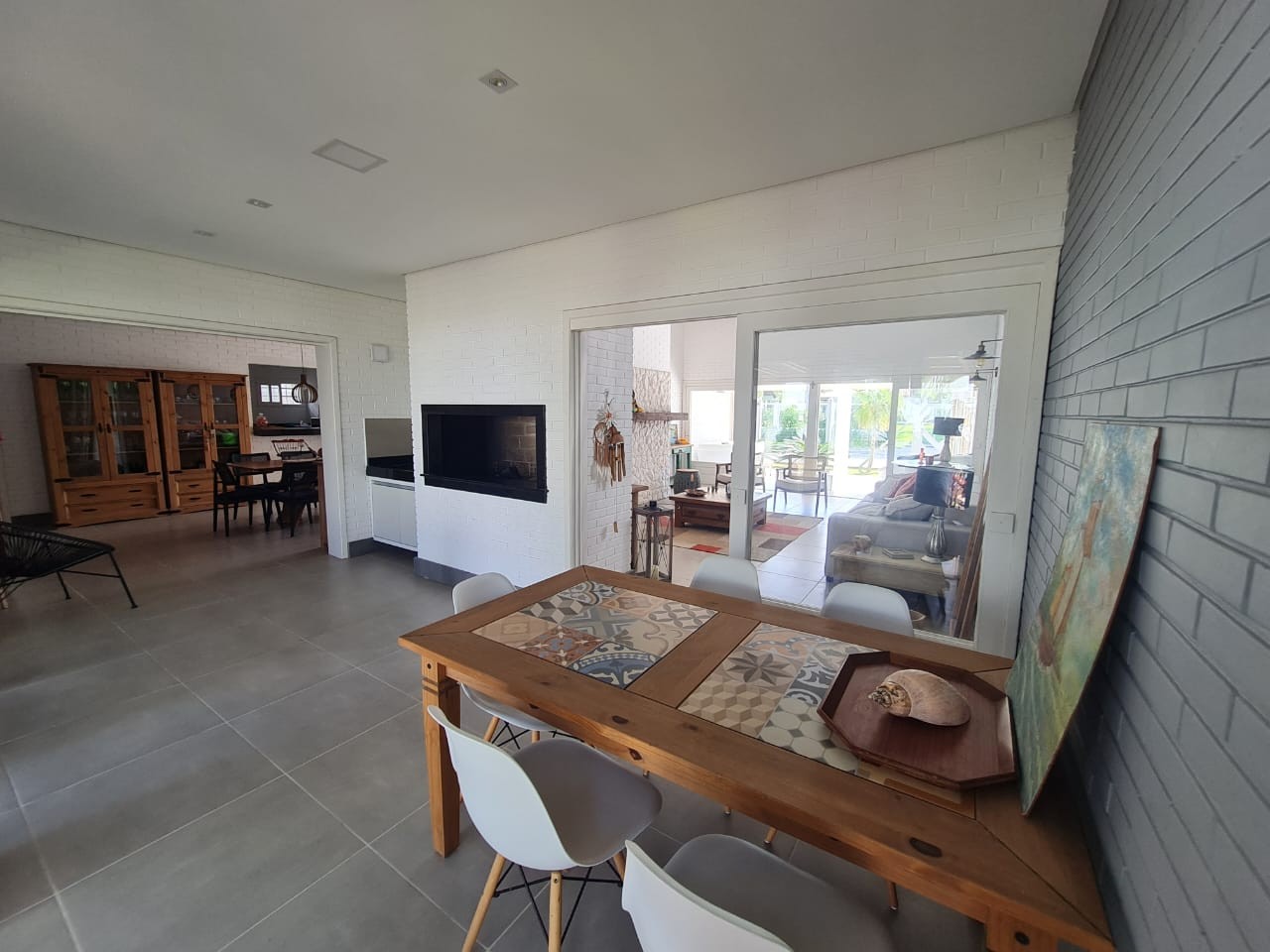 Linda casa térrea Lado mar Terreno 648 m² 264m² de área construída Completamente mobiliada 5 dormitórios, sendo uma suíte Com lareira Cozinha americana Living três ambientes Pé direito alto Espaço gourmet Varanda Lavanderia Banheiro social Garagem fechada para dois carros Amplo pátio fechado Piscina