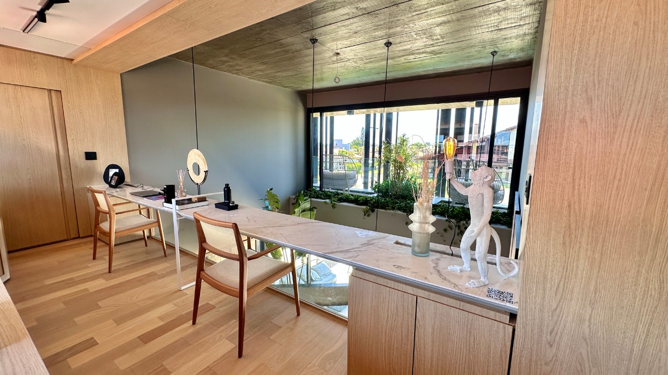 MANSÃO EM XANGRI-LA APROVADA NA THIRDHOME --------------------------------------- 800 M² DE TERRENO + ESPAÇO PUBLICO. Amplo terreno de esquina, erguido do nível da rua com privilegiada posição sendo lindeiro à uma área junto a rua que virou um lindo jardim privativo. 601M² DE ÁREA DA CASA Ampla residência que valoriza e destaca pela incrível área social da casa. Privacidade para toda família em casa localizada em área nobre porém fora das regras de condomínio. 5 SUÍTES Casa dispõe de 5 suítes, que hospeda confortavelmente 14 pessoas, sendo: Piso superior 2 - suítes superiores com banheira de imersão em pedra e resina importadas da Indonésia. 2 - suítes piso superior com 2 camas solteiro e 2 auxiliares. Piso térreo 1 - suíte com acessibilidade. 2 COZINHAS Duas cozinhas sendo uma totalmente equipada e integrada à sala de estar, A cozinha secundária serve de apoio para a realização de eventos e possui espaço para receber equipamentos do prestador de seviço. HOME OFFICE Escritório para Home Office com duas bancadas de trabalho entre as 4 suítes do piso superior. 8 BANHEIROS Sendo 5 banheiros nas suítes, 1 banheiro para prestadores de serviço e 2 lavabos, um no Spa e outro no hall de entrada da casa. 2 PISCINAS A Bossa544 dispõe de 2 piscinas sendo: Interna coberta 1 - Piscina aquecida e com hidromassagem, espaço com piscina pequena para criança pequena e ao lodo, cancha de areia para crianças brincarem no espaço interno. Externa 1 - Piscina externa com hidromassagem junto ao pátio da casa e amplo jardim. SAUNA ÚMIDA Na sauna úmida, a circulação de vapor aumenta, acelera o processo de recuperação muscular e auxilia a queima de calorias, atuando como um sistema de reforço imunológico. PARRILLA DE BANCADA EXTERNA Espaço para preparo de assados junto à piscina e pátio. 2 LAVANDERIAS Sendo 1 equipada com máquinas de maior porte para lavagem de roupa de camas e toalhas. 1 Lavanderia para uso familiar. GARAGEM COBERTA A Bossa544 dispõe de 1 garagem coberta com vista integral da sala. O veículo guardado serve de peça decorativa para a sala de estar da casa. O terreno tem ainda capacidade para acolher 7 carros no pátio da casa. QUARTO DE APOIO PARA FUNCIONÁRIOS Quarto de descanso com banheiro de apoio para funcionários e prestadores de serviço na casa. ESPAÇO KIDS Espaço kids fechado para crianças utilizarem sem acesso à area externa do pátio. SEGURANÇA Sitema de segurança com sistema de alarme com acionamento individual para área externa e interna da casa com monitoramento 24h pela STV, empresa de segurança situada à 150m da casa. Câmeras de segurança na área externa da casa, mantendo a privacidade e a segurança dos moradores. CONFORTO TÉRMICO Casa equipada com Ar Condicionados Quente/Frio. 2 Ar condicionados Cassete de 36.000 BTU´s na Sala Suítes superiores com Ar Condicionado Inverter de 18.000 BTU´s e nas suítes menores estão equipadas com Ar Condicionado Inverter de 12.000 BTU´s. Sala equipada com lareira a lenha para utilização no inverno. TELEVISORES Assista seu programa favorito diretamente da piscina externa. Na sala você visualizará um televisor de 85". Nas suítes superiores (2), você terá a sua disposição televisores de 55" e nas demais suítes de 43". EQUIPADA COM WI-FI 6, 802.11AX Diversos pontos de Wi-Fi 6 nas áreas comuns internas e externas. Cada quarto dispõe de roteadores de internet e as TVs Smart são conectadas diretamente via cabo lógico. É mais rápido do que as versões anteriores podendo atingir velocidades de até 9, 6 Gbps. Tem maior segurança, usando o protocolo criptográfico WPA3.É mais eficiente, permitindo conectar mais dispositivos simultaneamente sem perda de velocidade. É mais econômico, reduzindo o consumo de energia dos dispositivos BOSSA544 DEPENDÊNCIAS DA CASA O INESPERADO PODE SER SURPREENDENTE.