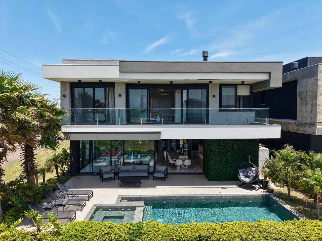 ?05 Suítes?Lavabo?494, 57 M² Área construída?513, 95 M² Área total?Completamente Mobíliada?Decorada?Pronta para uso?Ambientes integrados?Muita iluminação Natural?Piscina de concreto?Paisagismo completo ————————————————?Localização: ?Condomínio Sense?Xangri-lá - RS