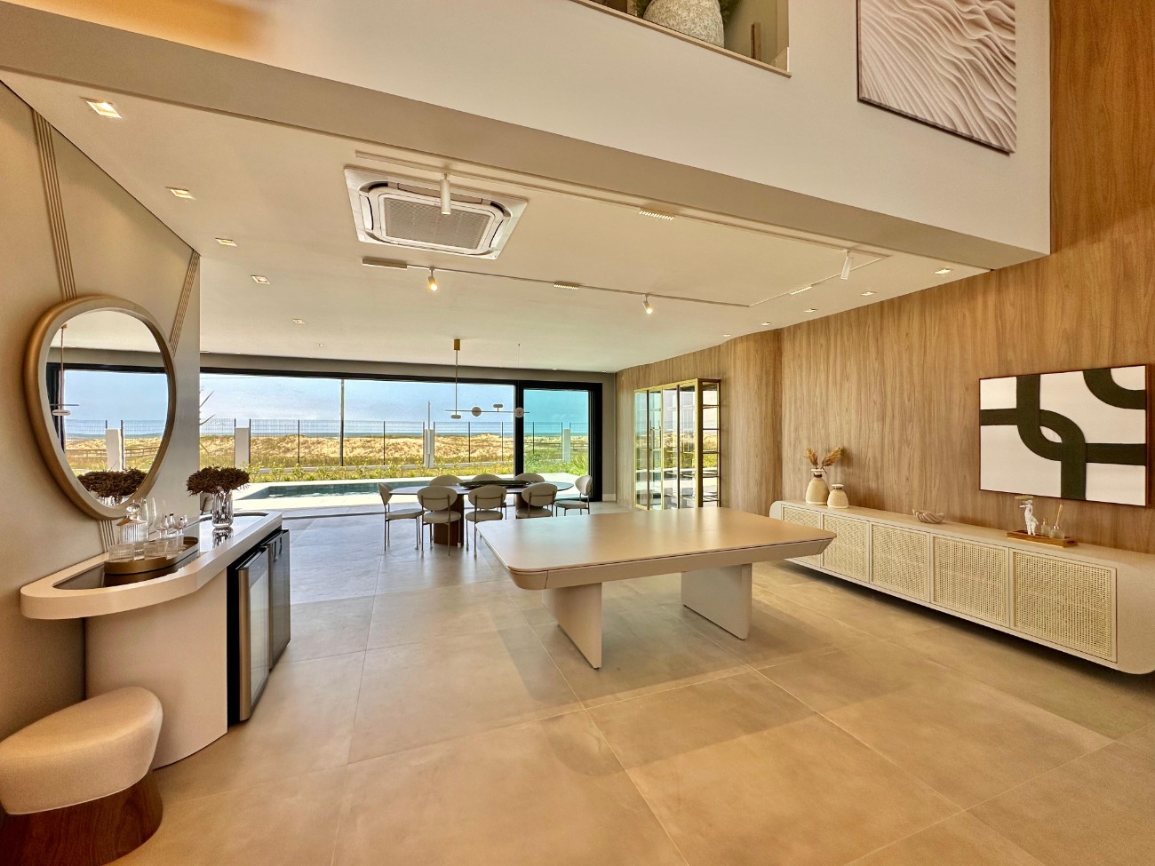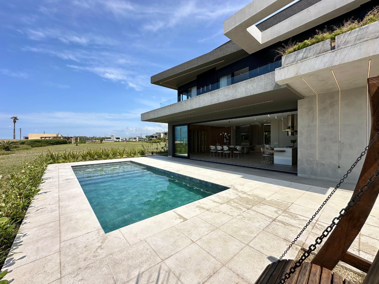 Sobrado beira mar, com 380m² de área construída, composto de 5 suítes, living 3 ambientes, lavabo, cozinha integrada com churrasqueira, piscina de concreto, lavanderia, abrigo para carro, completamente mobiliada e decorada.