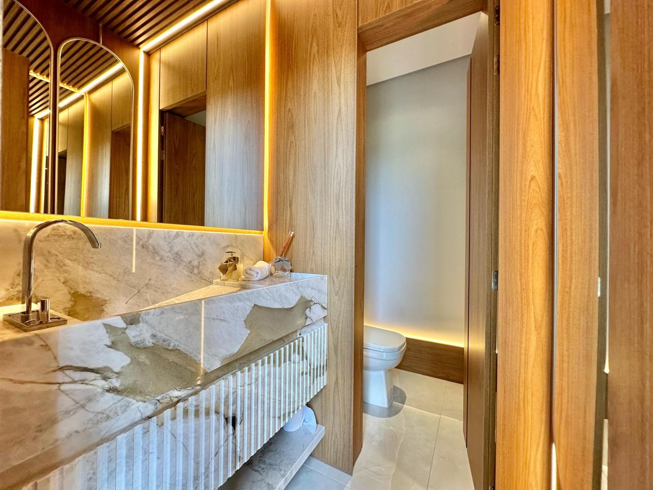 Lote de esquina beira lago Mobiliado e decorado Composto por 05 suítes independentes, sendo 01 suíte máster e 01 suíte térrea Living amplo com 03 ambientes Lareira Lavabo Espaço gourmet Cozinha integrada Lavanderia Paisagismo Piscina em concreto Abrigo para 02 carros